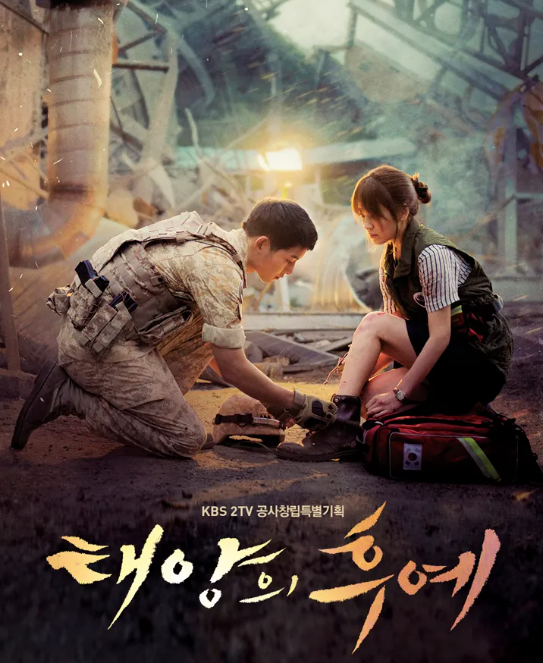 "태양의 후예"는 2016년 KBS에서 방영되어 매우 인기를 얻은 드라마로, 군인과 의사의 사랑 이야기를 중심으로 전쟁과 인도주의적 구호 활동을 담은 작품입니다. 송중기와 송혜교의 로맨스를 중심으로, 화려한 영상미와 감동적인 스토리, 그리고 긴장감 넘치는 전개가 결합되어 방영 당시 국내뿐만 아니라 해외에서도 큰 인기를 끌었습니다. 당시 침체에 빠져있던 지상파 드라마를 다시 일으켜 세운 드라마이자 사전제작 드라마 열풍의 장본인이다.