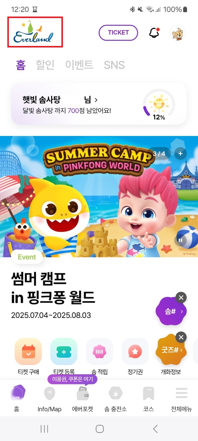 1. 앱 홈 화면에서 에버랜드를 눌러줍니다.